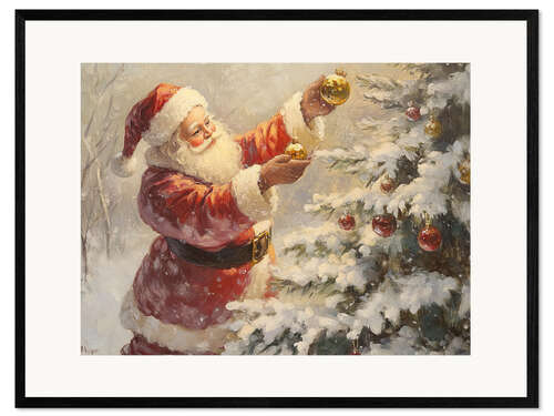 Posterlounge   Wandbilder   Geschenkideen   Weihnachten   TAlex   Gerahmter Kunstdruck Vintage Santa Claus und Weihnachtsbaum