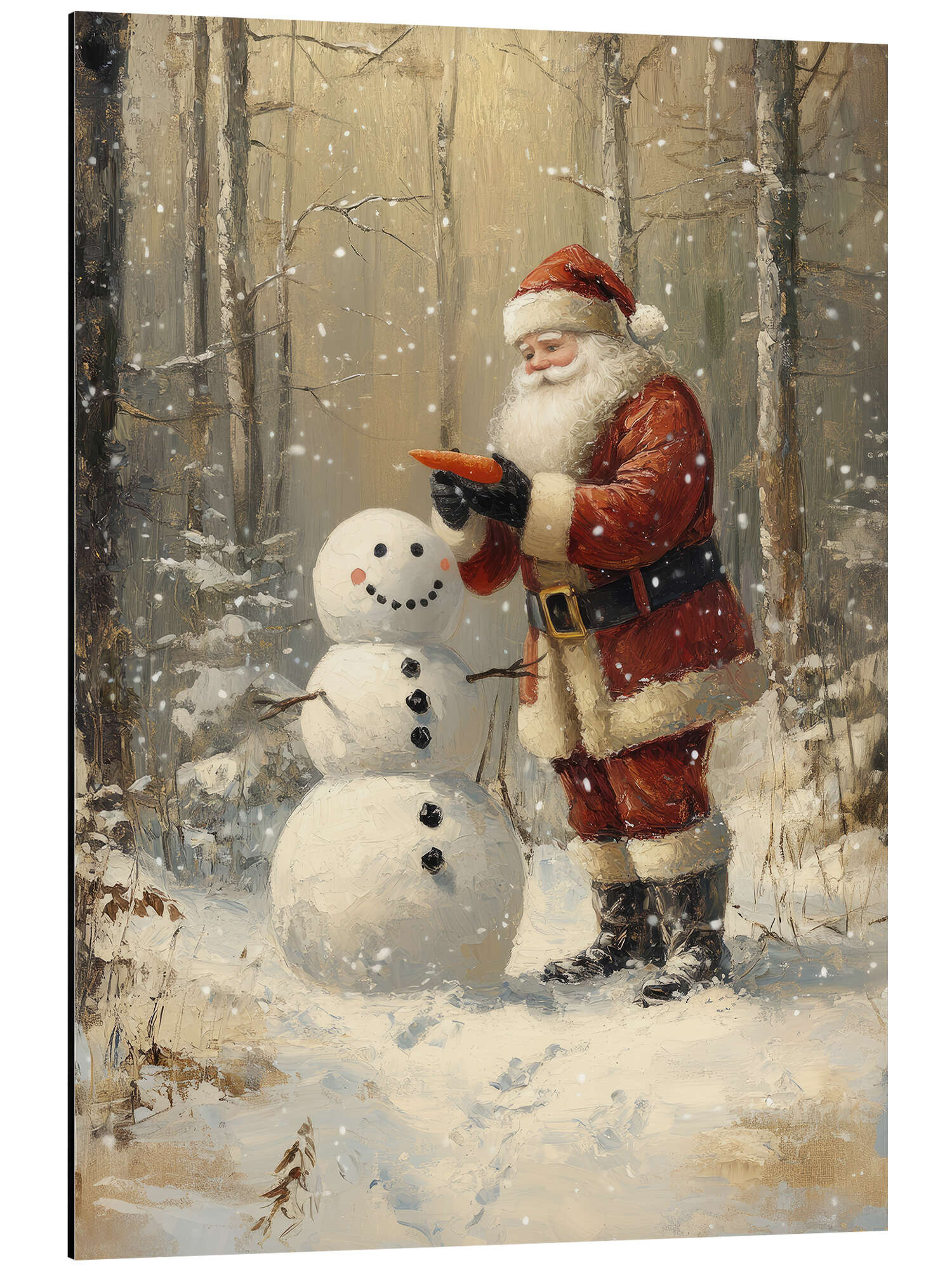 Alubild Santa Claus macht einen Schneeman