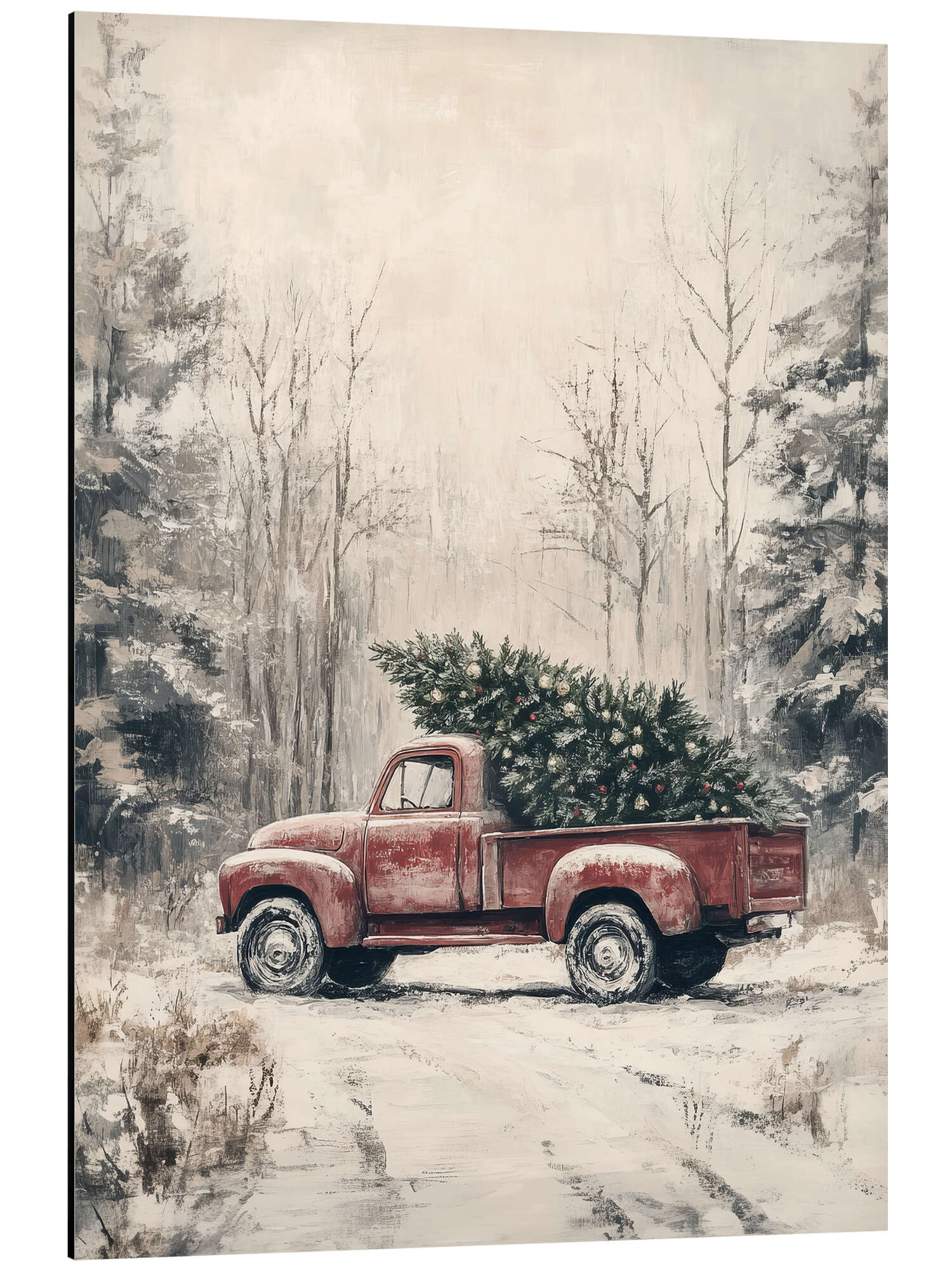 Posterlounge   Wandbilder   Geschenkideen   Weihnachten   TAlex   Magnettafel Roter Vintage Truck mit Weihnachtsbaum