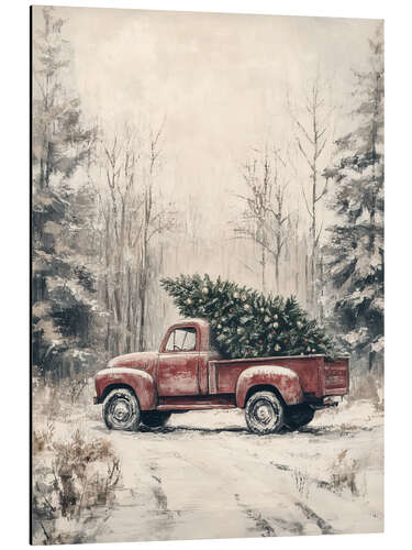 Roter Vintage Truck mit Weihnachtsbaum von TAlex