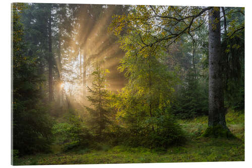 Acrylglasbild Sonnenaufgang im Erzgebirgswald