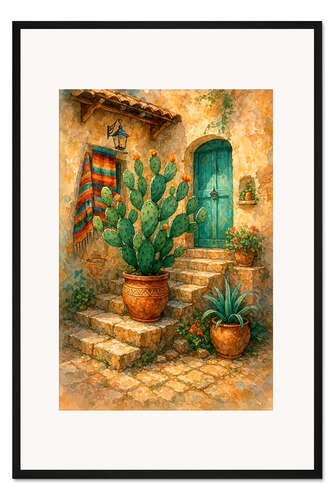 Posterlounge   Wandbilder   Botanik   Pflanzen   Kakteen   Natalie Bruns   Gerahmter Kunstdruck Sonniges mexikanisches Haus mit blühendem Kaktus