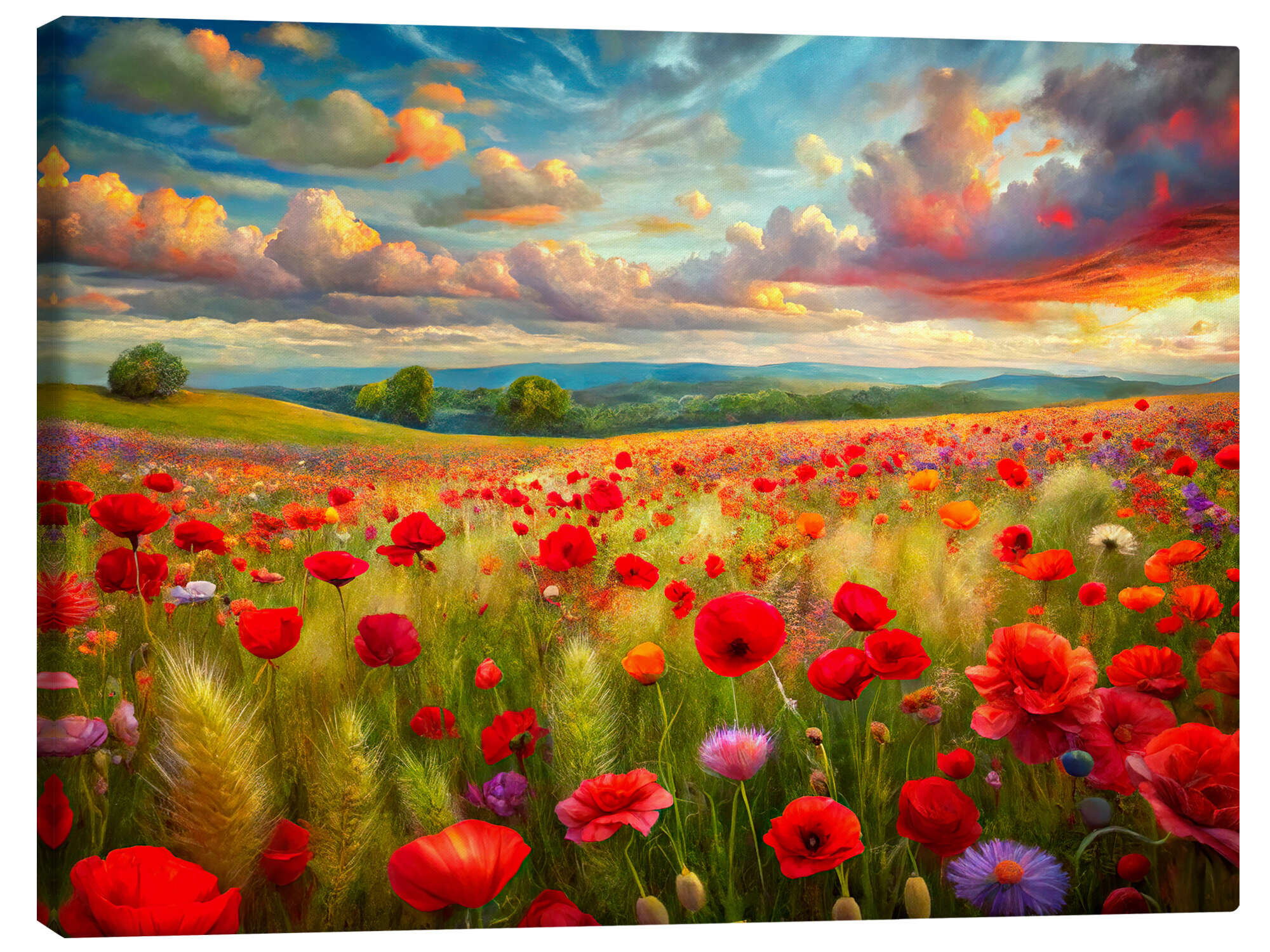 Leinwandbild Mohnfeld im Frühling mit leuchtenden Farben