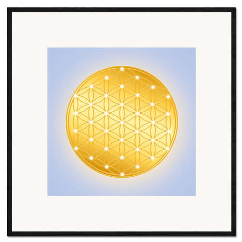 Gerahmter Kunstdruck Blume des Lebens - Serie Golden Spirit Light
