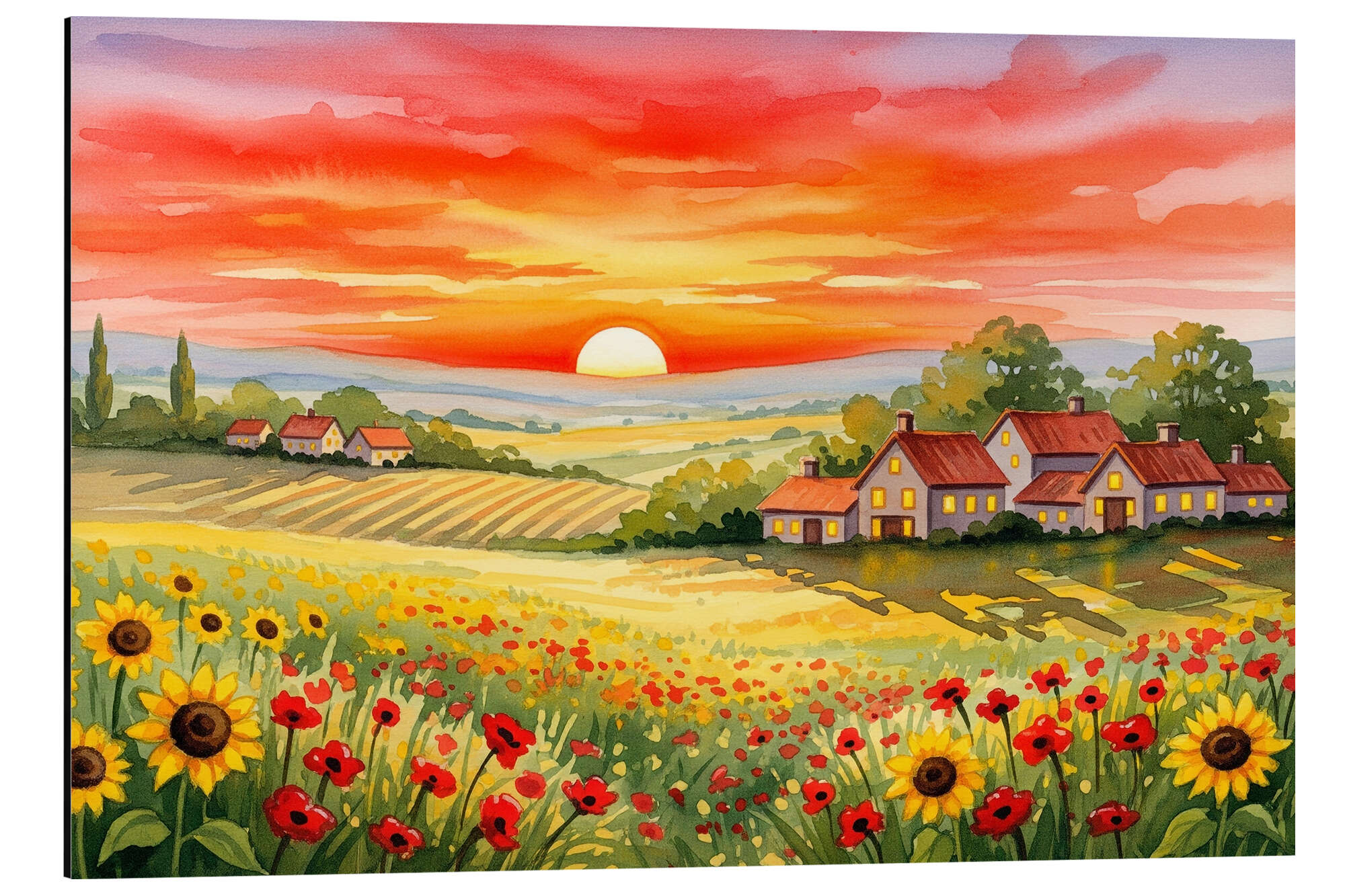 Alubild Sonnenuntergang auf den Feldern