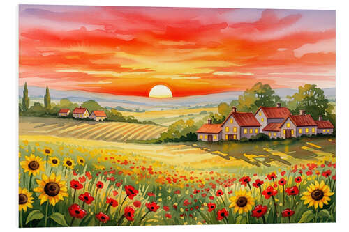 Hartschaumbild Sonnenuntergang auf den Feldern