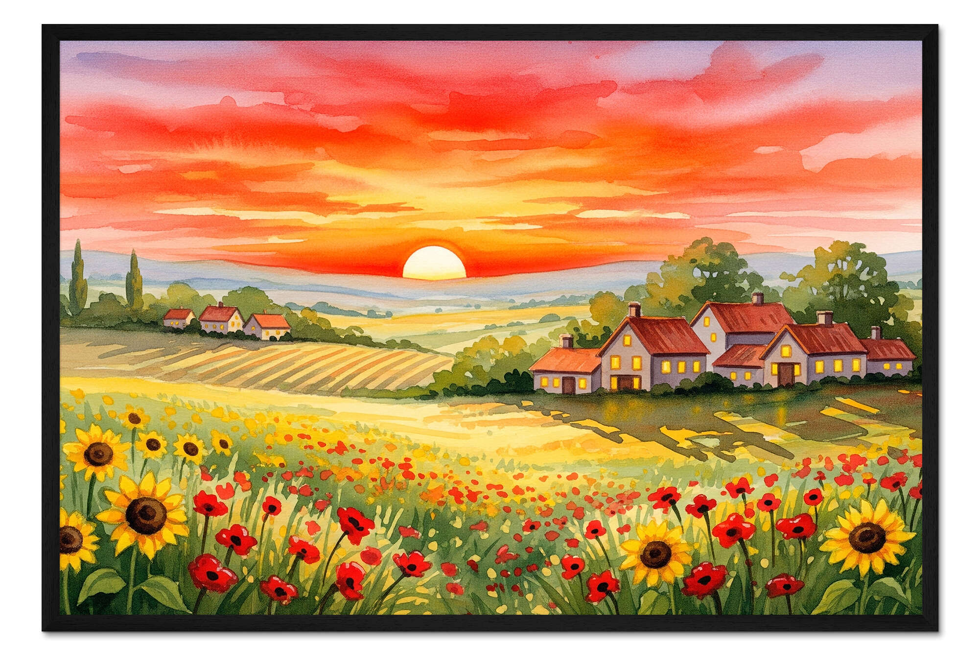 Posterlounge   Wandbilder   Natur   Himmel   Mango Art   Gerahmter Kunstdruck Sonnenuntergang auf den Feldern