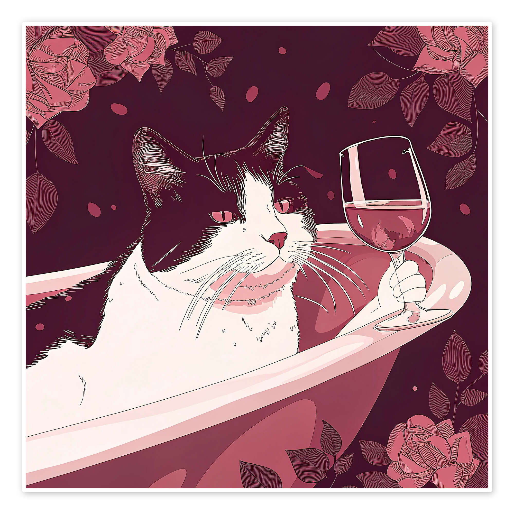 Poster Katze trinkt Rotwein
