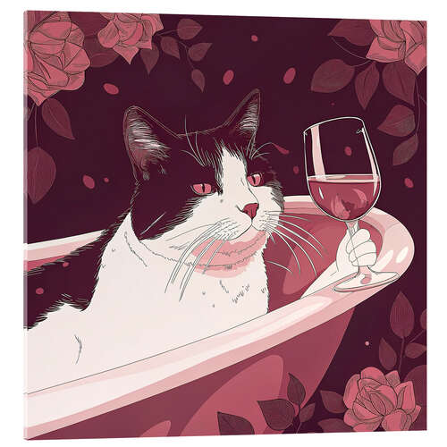 Acrylglasbild Katze trinkt Rotwein