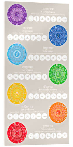 Posterlounge   Wandbilder   Spiritualität & Entspannung   Yoga   Grafikfreuden   Acrylglasbild Die 7 Chakren mit Yoga-Übungen