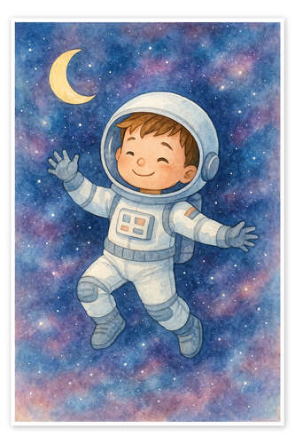 Posterlounge   Wandbilder   Blau   Natalie Bruns   Poster Kleiner Astronaut im Weltraum