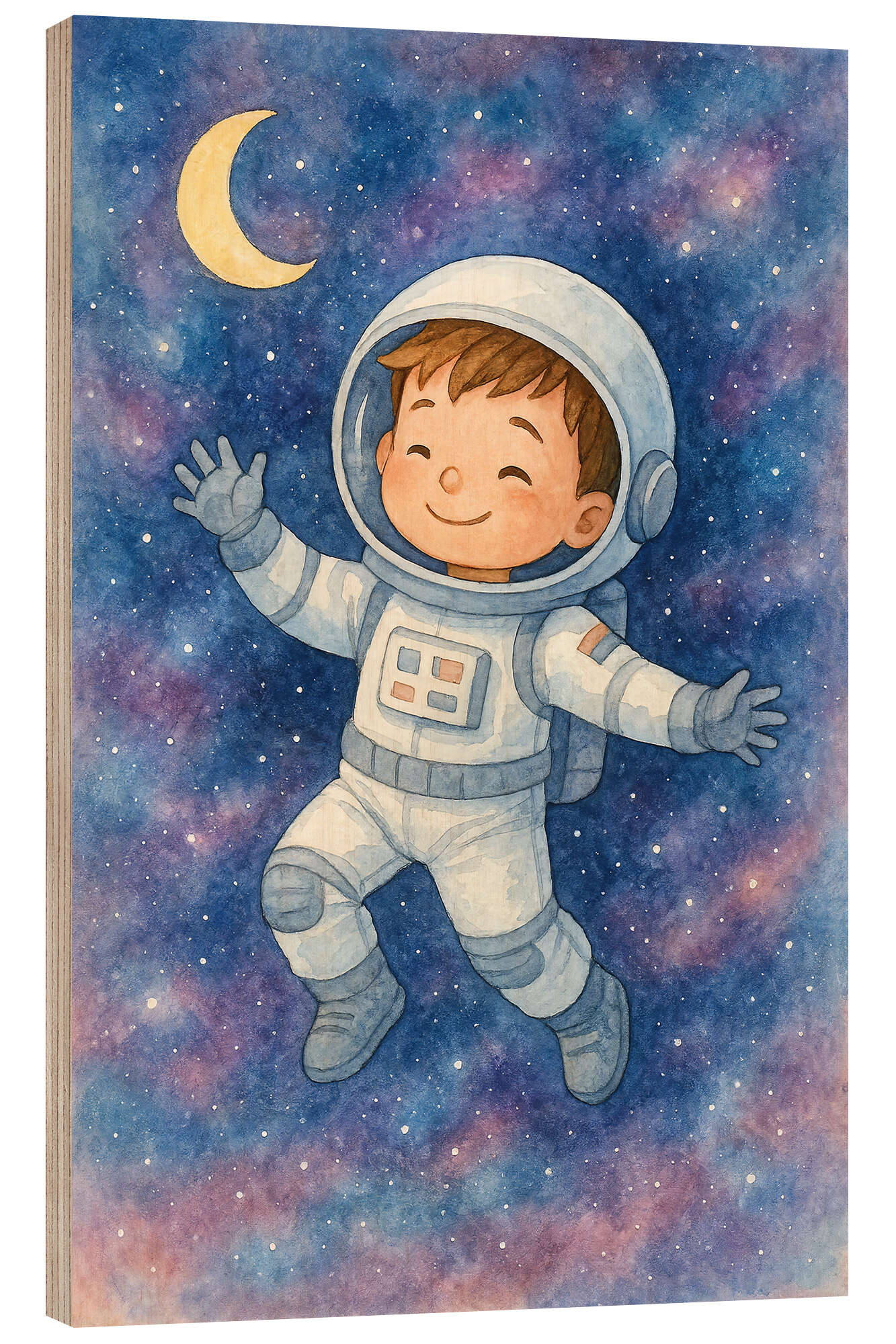 Posterlounge   Wandbilder   Blau   Natalie Bruns   Holzbild Kleiner Astronaut im Weltraum