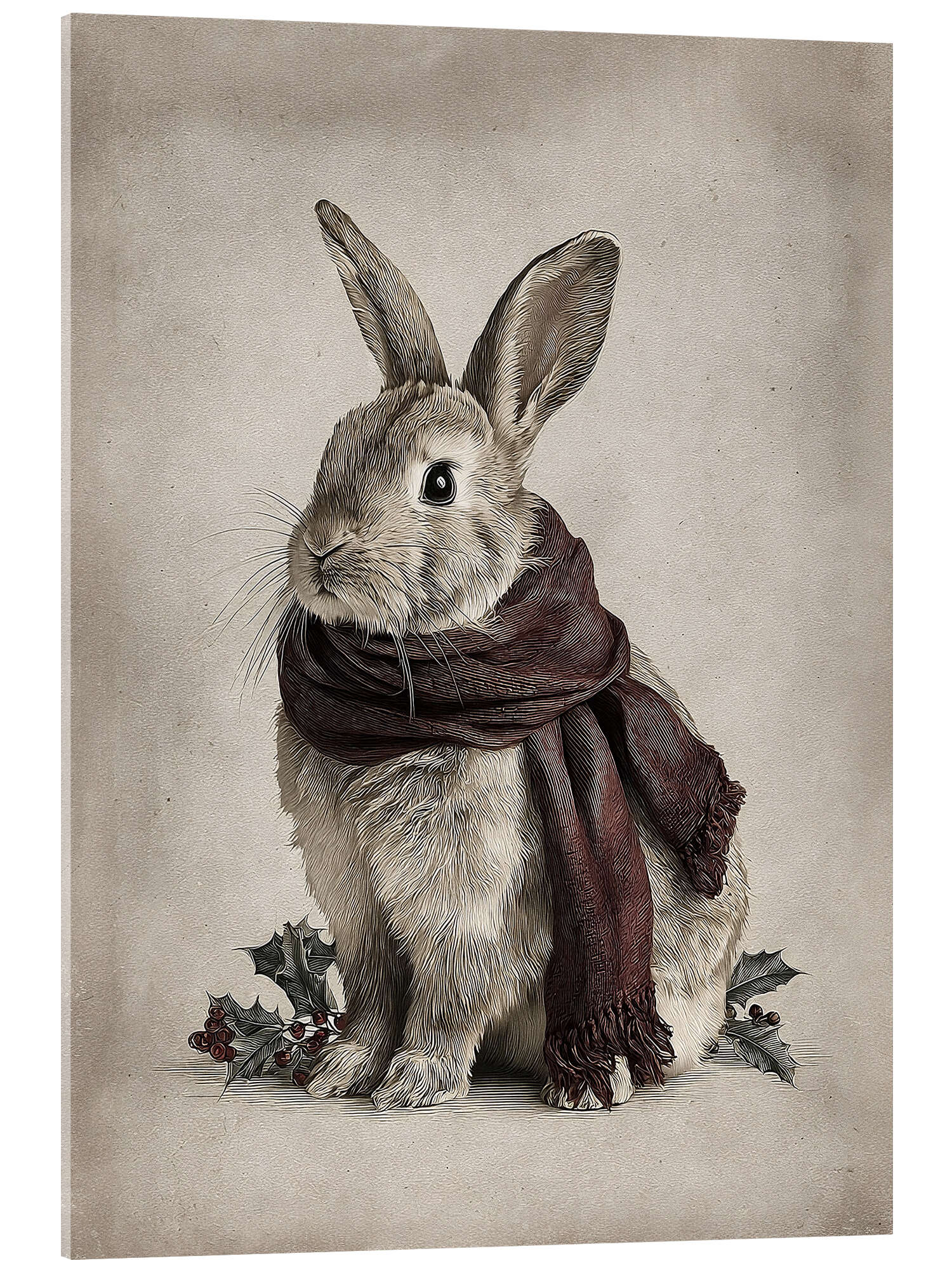 Acrylglasbild Winterhase mit rotem Schal