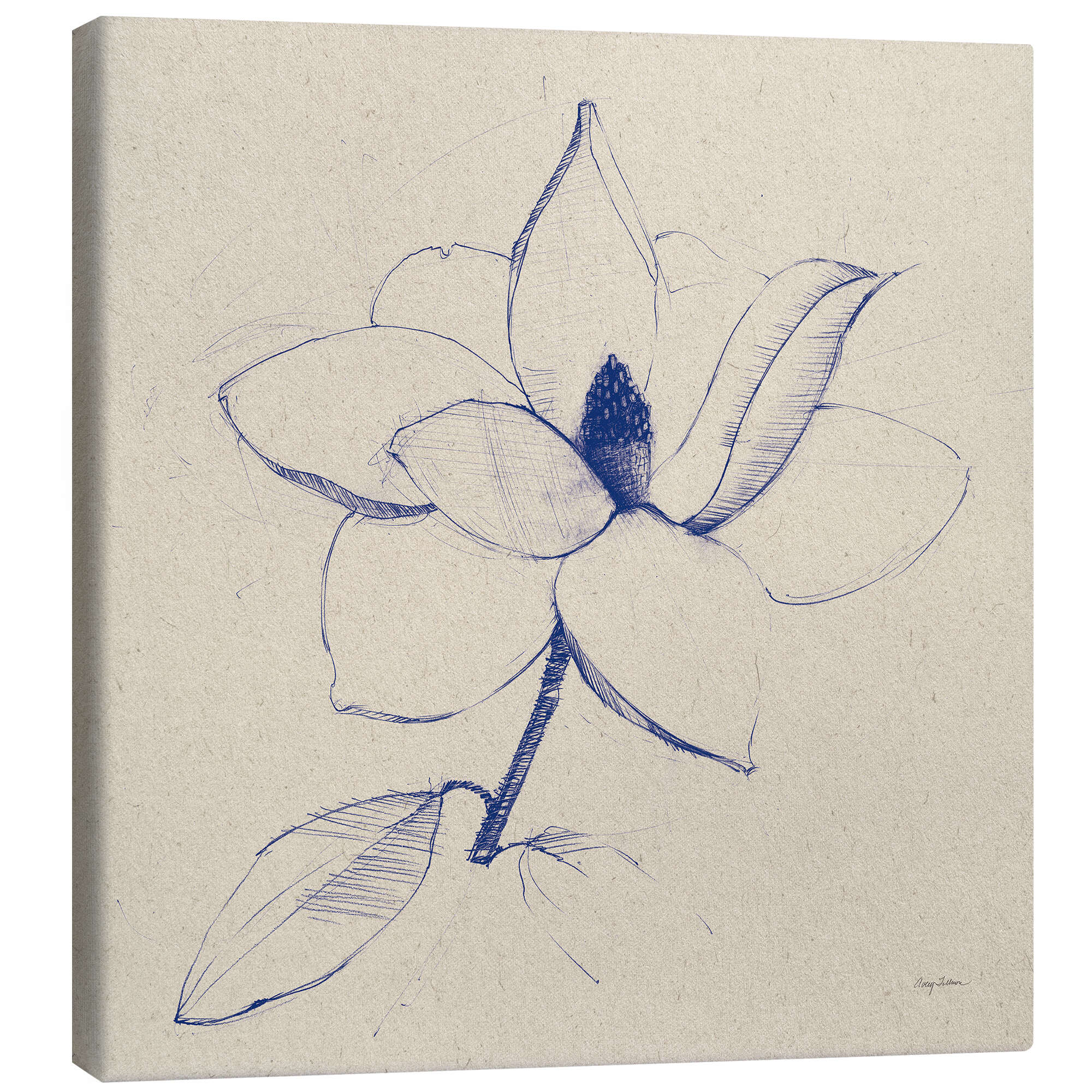 Leinwandbild Blumenskizze in Blau II