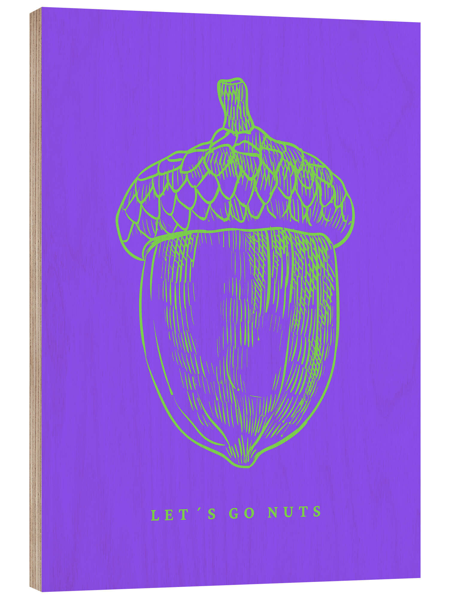 Posterlounge   Wandbilder   Lila   Ohkimiko   Holzbild Let´s get nuts - Nuss in neongrün/lila