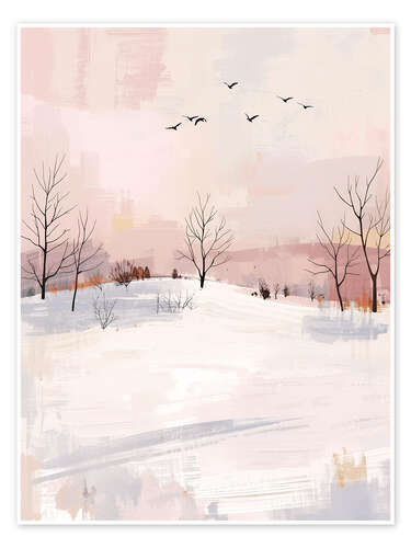 Poster Schneelandschaft mit Vogelschwarm
