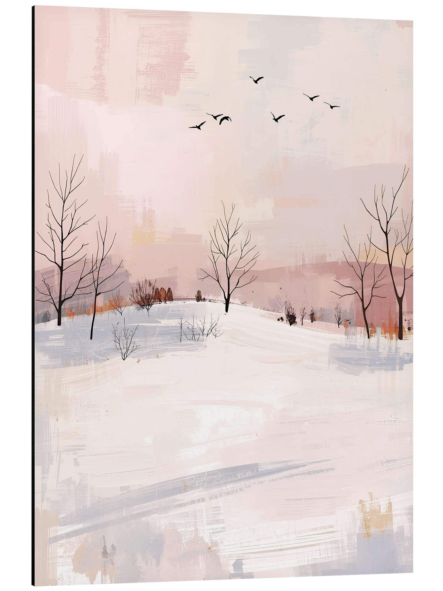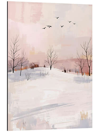 Posterlounge   Wandbilder   Geschenkideen   Weihnachten   Ohkimiko   Alubild Schneelandschaft mit Vogelschwarm