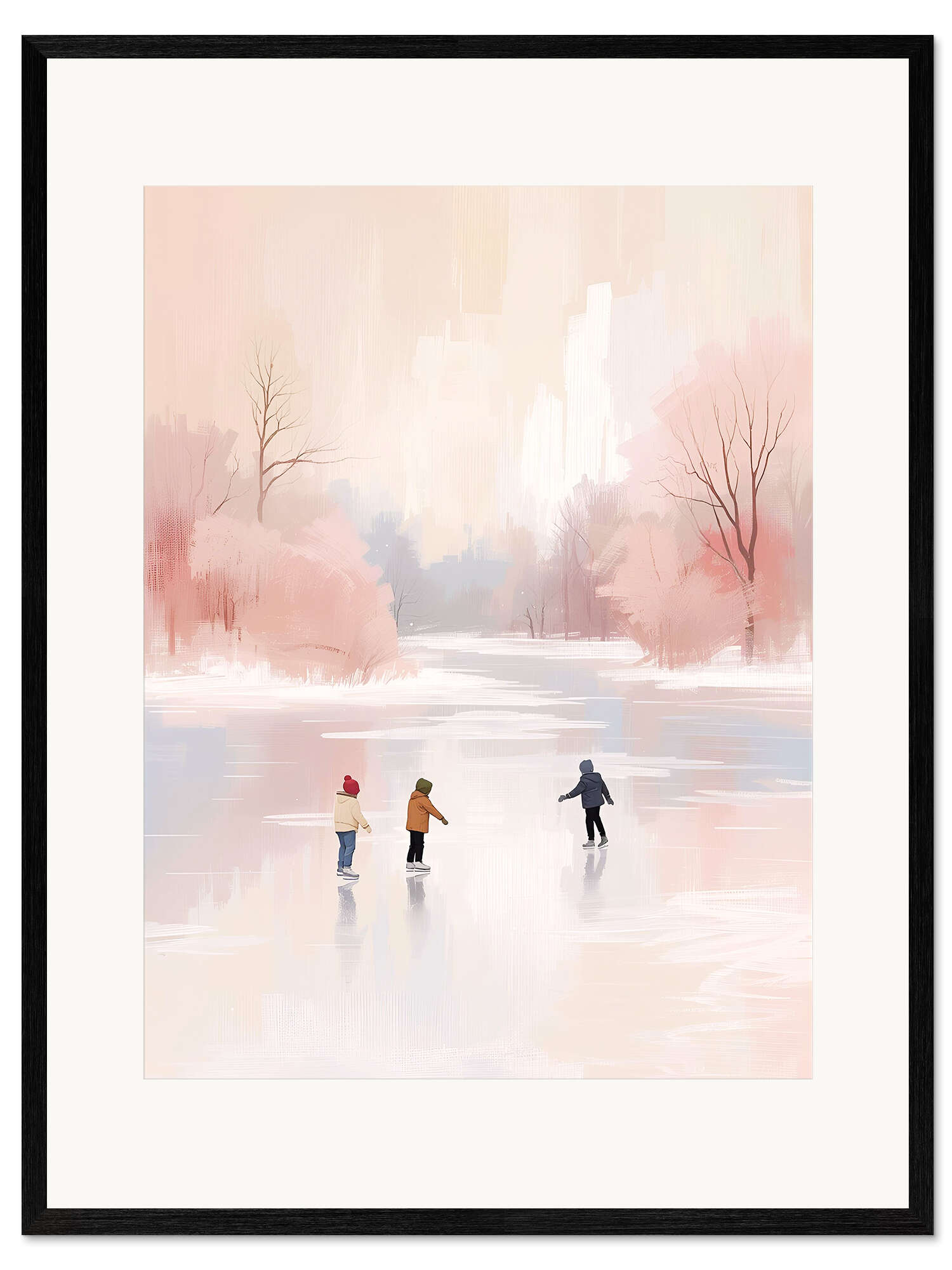 Gerahmter Kunstdruck Kinder laufen Schlittschuh