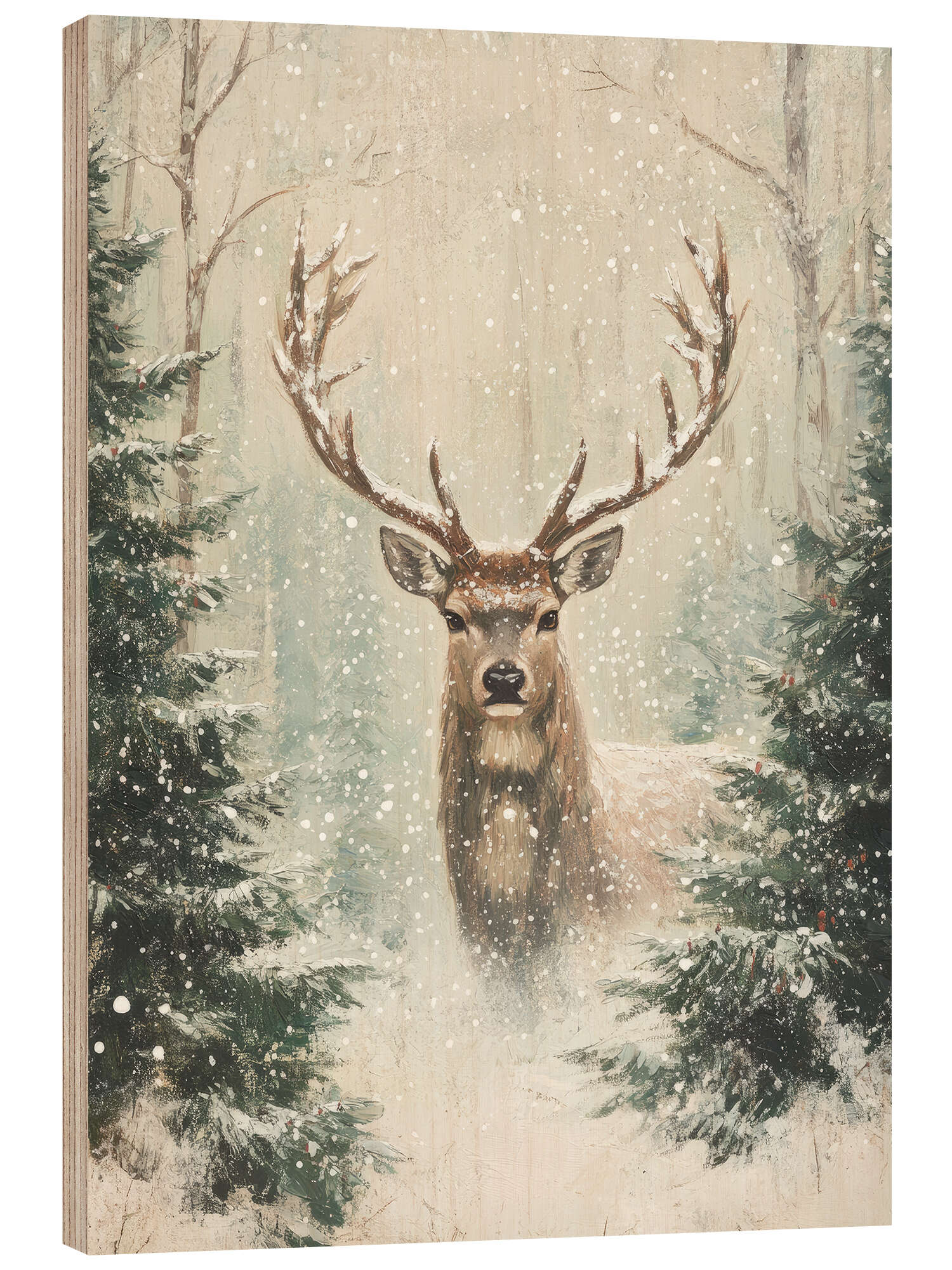 Holzbild Vintage Weihnachtshirsch
