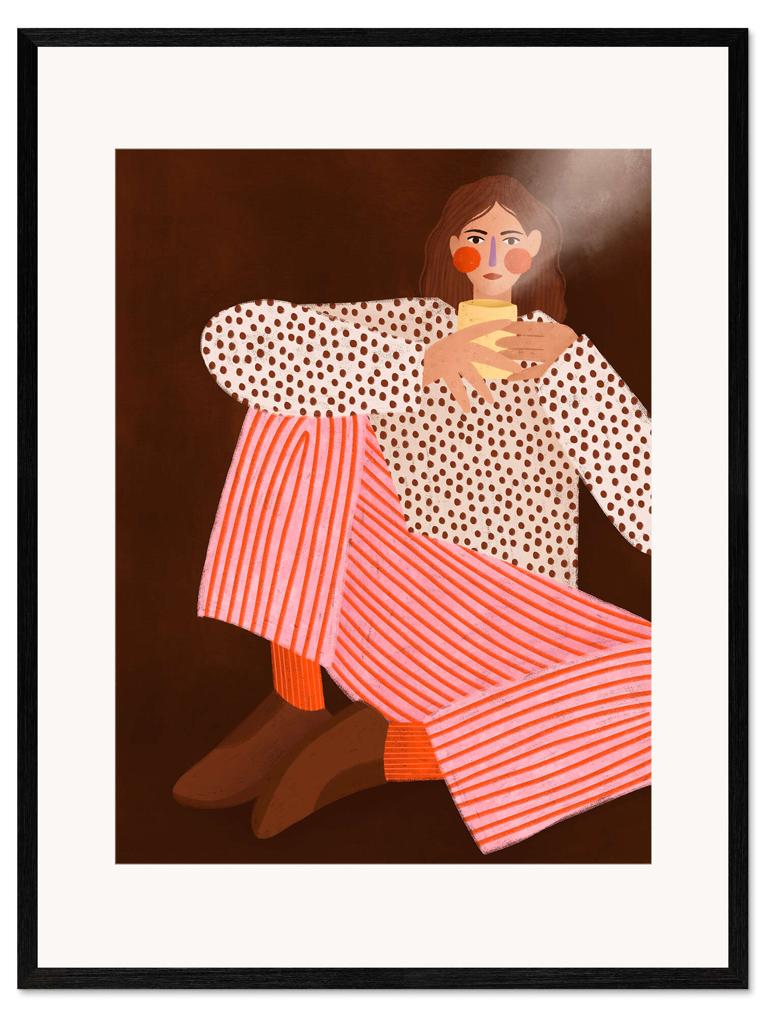 Posterlounge   Wandbilder   Rosé   Bea Müller   Gerahmter Kunstdruck Frau beim Tee Trinken