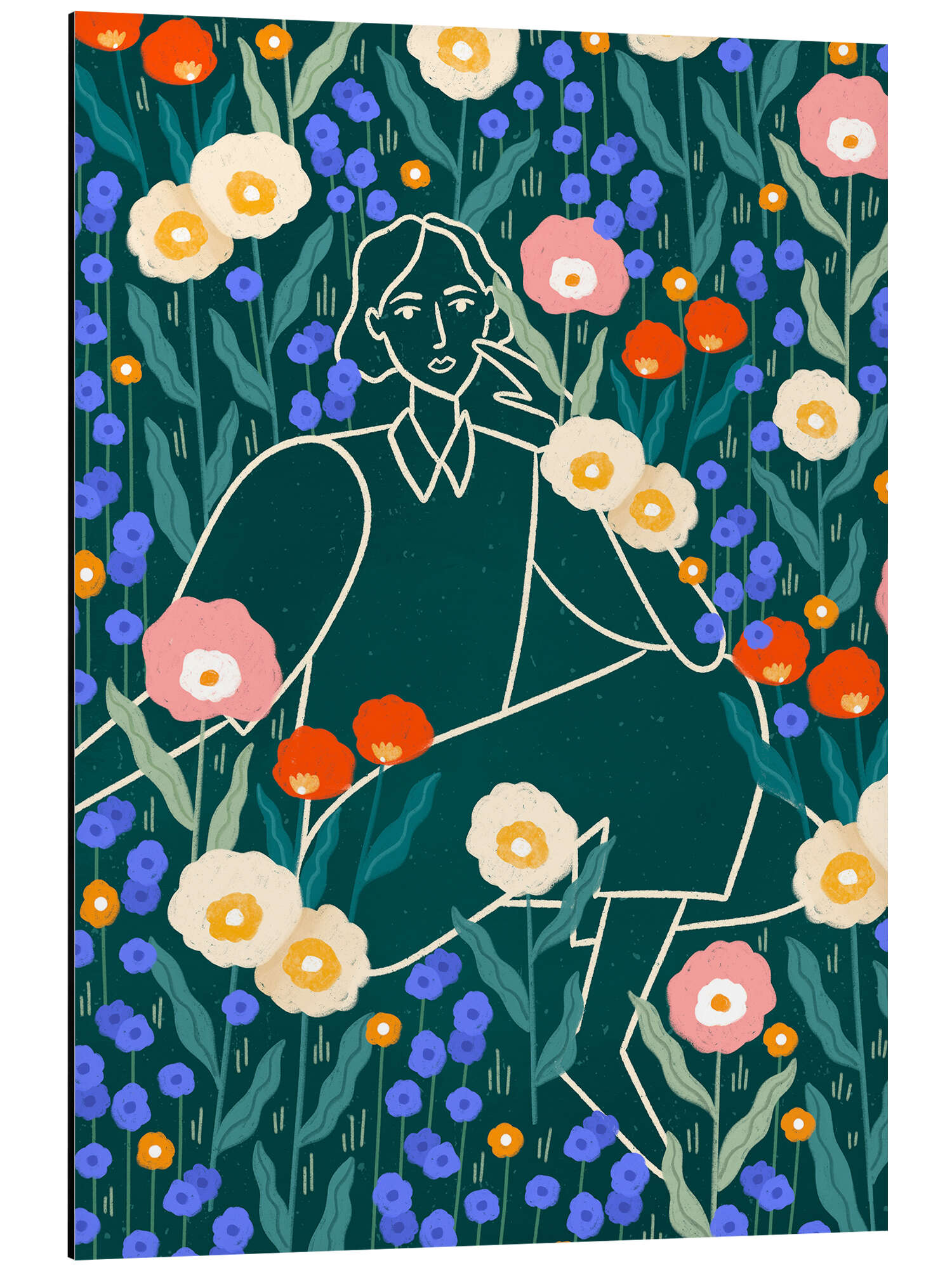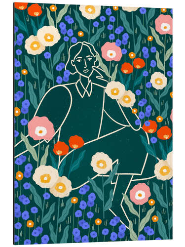 Posterlounge   Wandbilder   Illustration   Bea Müller   Alubild Linienfrau mit Blumen