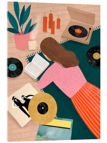 Posterlounge   Wandbilder   Rosé   Bea Müller   Acrylglasbild Plattenspielen und Lesen