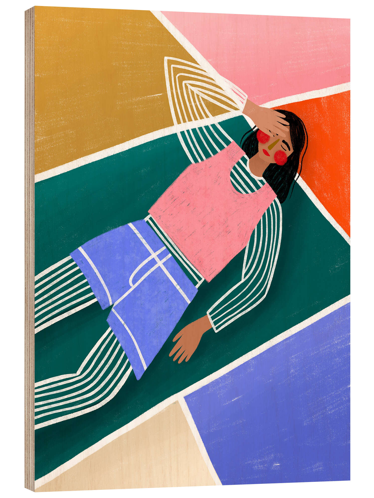 Holzbild Lebhafte Frau beim Ausruhen