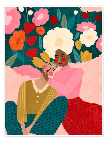 Posterlounge   Wandbilder   Rosé   Bea Müller   Poster Umarmendes Paar in blumiger Umarmung