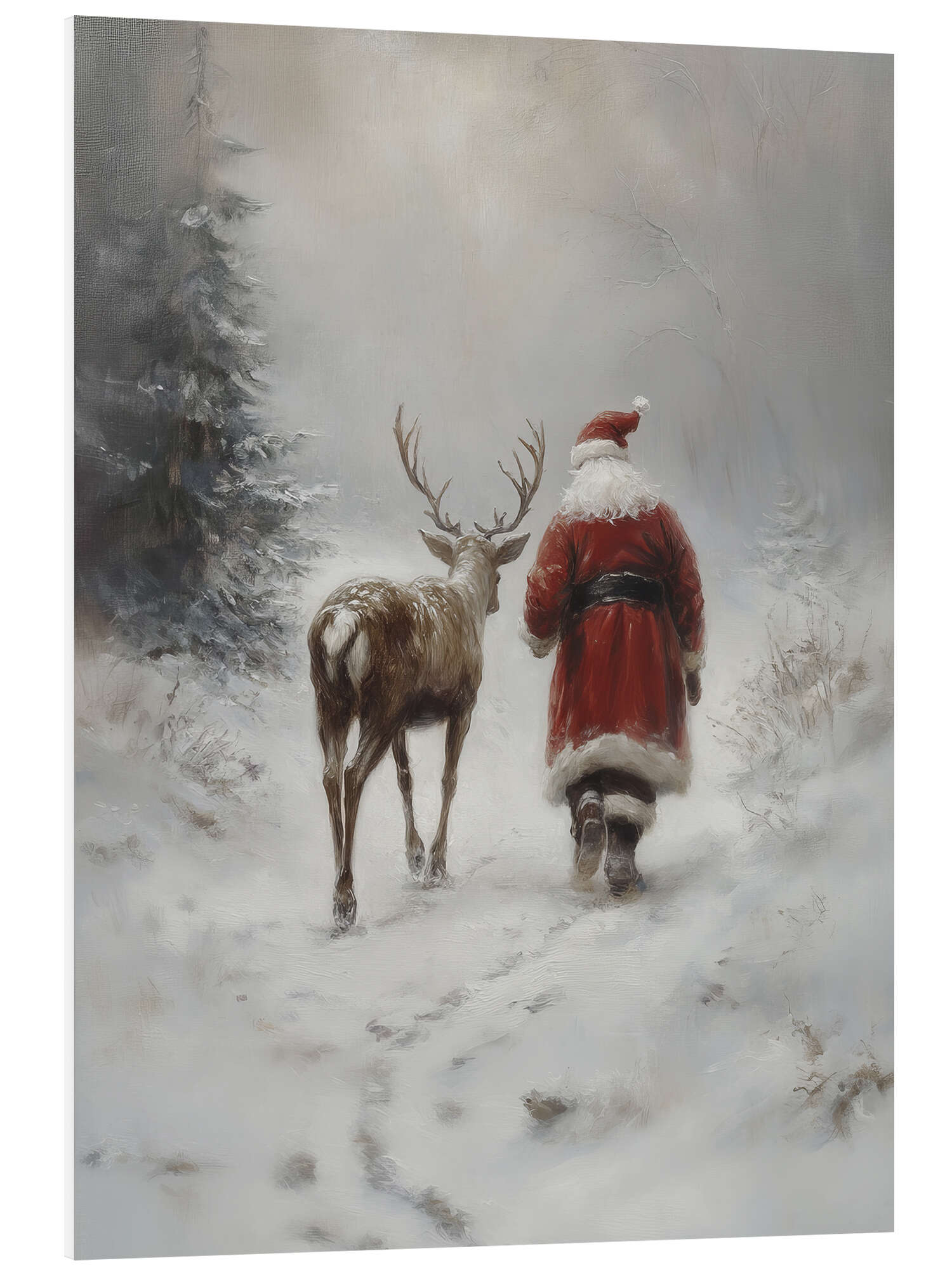 Hartschaumbild Vintage Weihnachtsmann mit Rentier