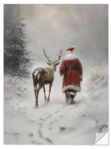 Posterlounge   Wandbilder   Geschenkideen   Weihnachten   TAlex   Wandsticker Vintage Weihnachtsmann mit Rentier