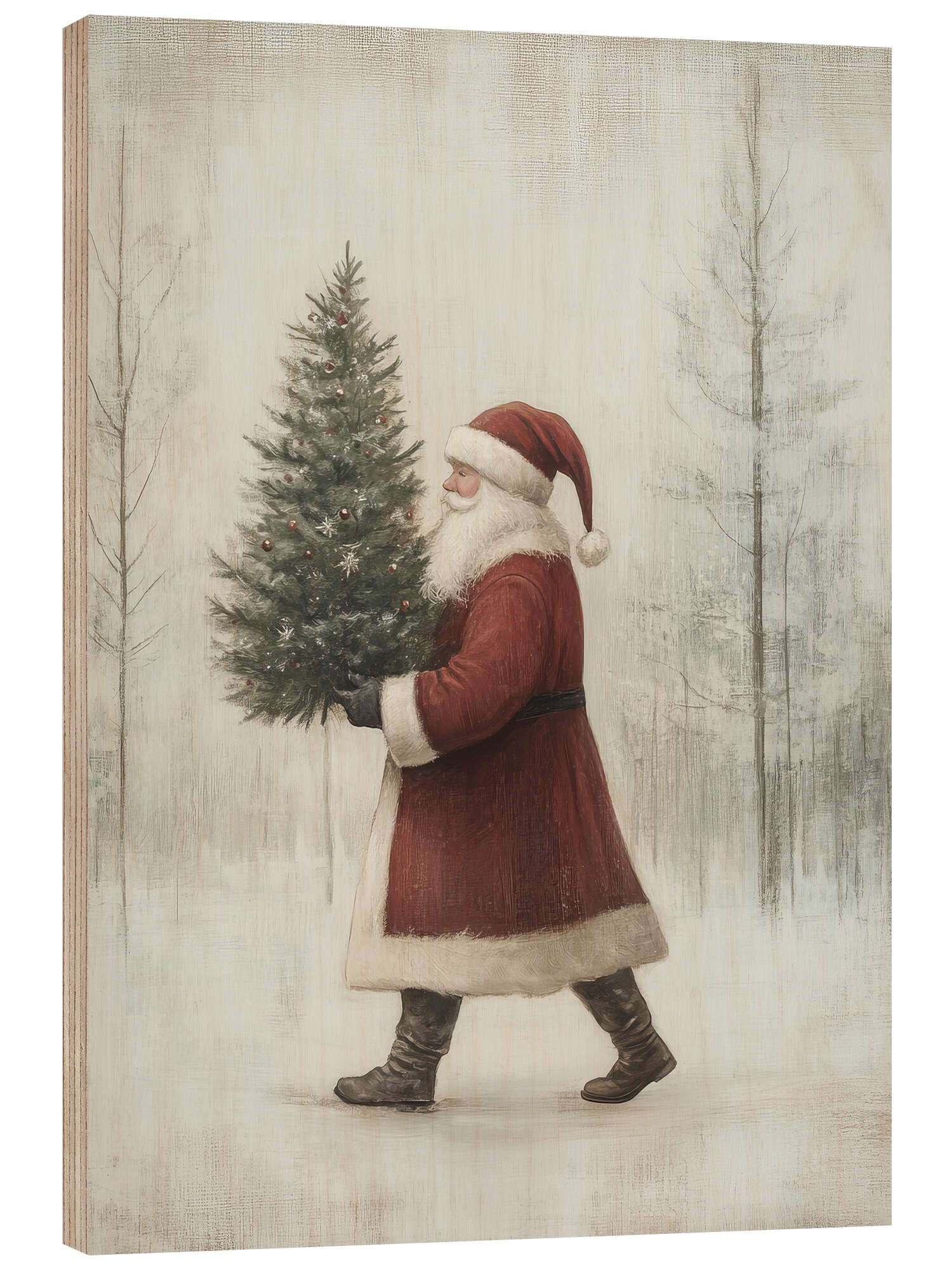 Holzbild Weihnachtsmann mit Weihnachtsbaum