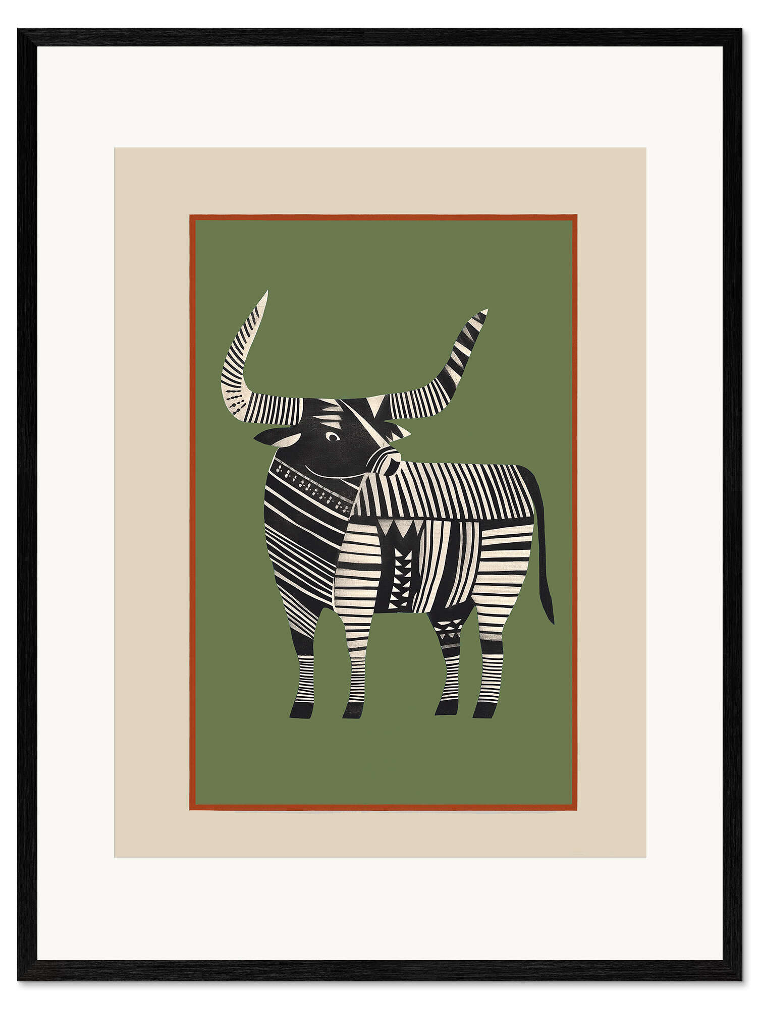Gerahmter Kunstdruck Gestreifter Bulle