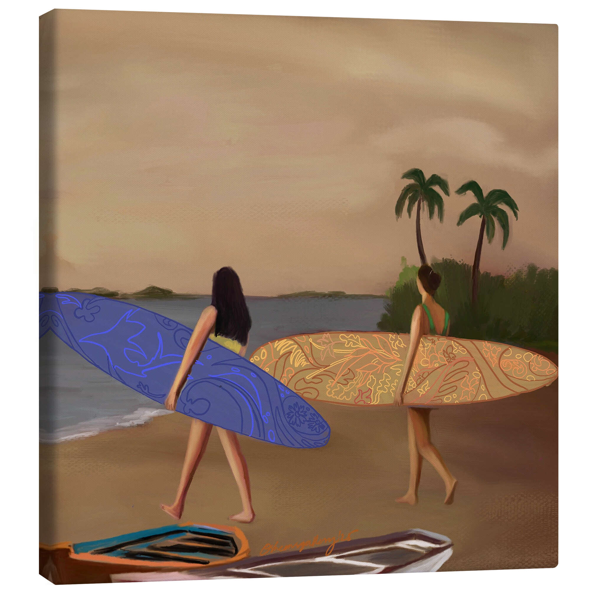 Leinwandbild Wellen und Sonnenuntergänge jagen