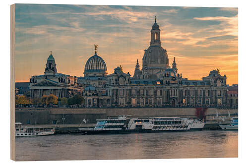 Holzbild Dresden Altstadt zum Sonnenuntergang