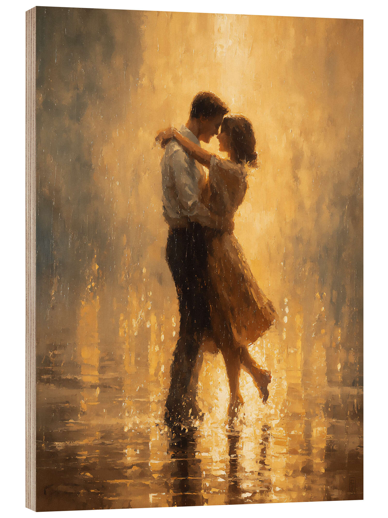 Holzbild Kuss im Sommerregen
