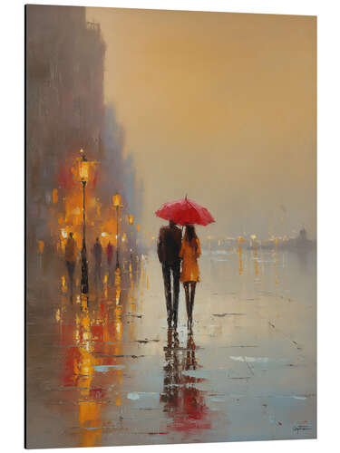 Alubild Spaziergang im warmen Regen