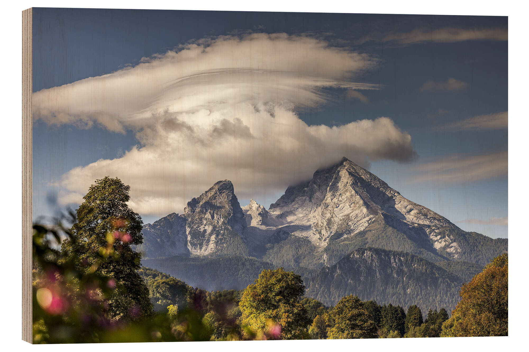 Posterlounge   Wandbilder   Landschaften   Berge & Gebirge   Fotomagie   Holzbild Watzmann mit Hut im Spätsommer
