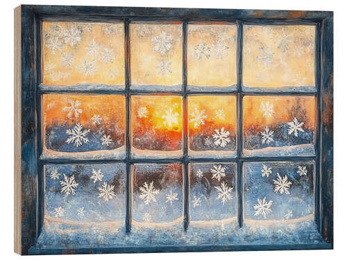 Holzbild Verschneites Fenster am Weihnachten