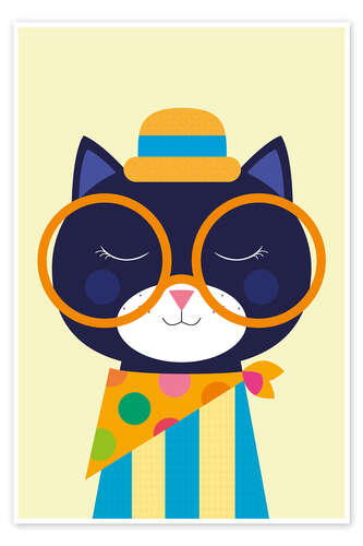 Posterlounge   Wandbilder   Illustration   Jaysanstudio   Poster Verspieltes Katzenporträt mit übergroßer Brille
