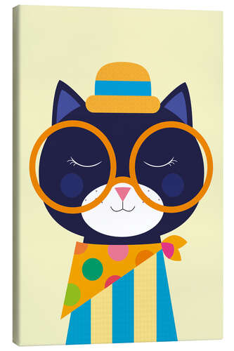 Leinwandbild Verspieltes Katzenporträt mit übergroßer Brille