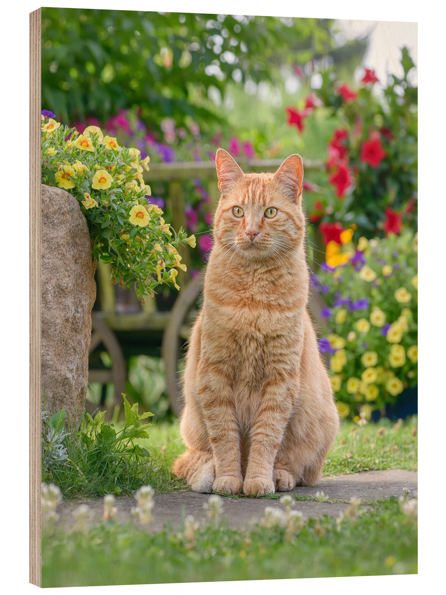 Posterlounge   Wandbilder   Grün   Katho Menden   Holzbild Rote Katze sitzt zwischen Blüten
