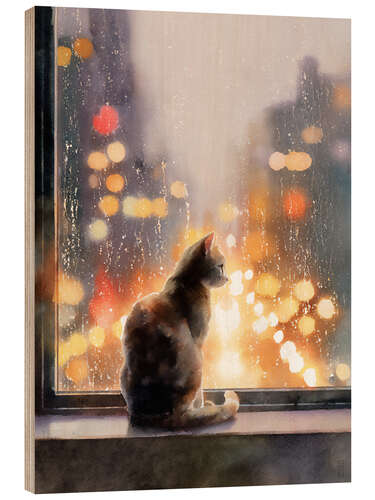 Holzbild Sehnsucht am Fenster