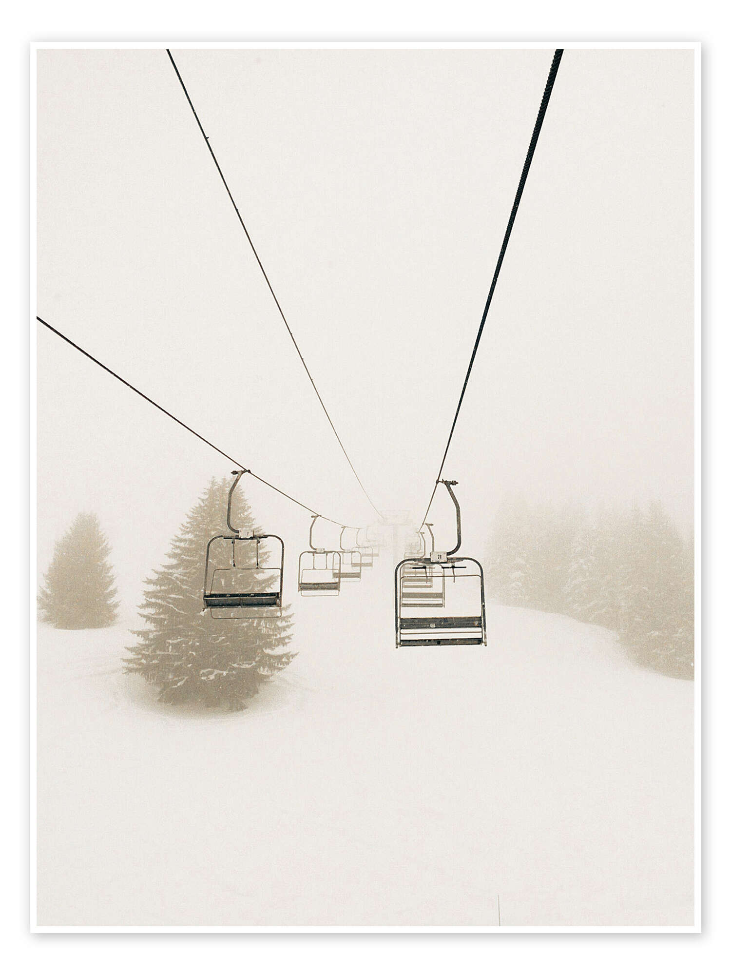 Poster Skilift im Nebel