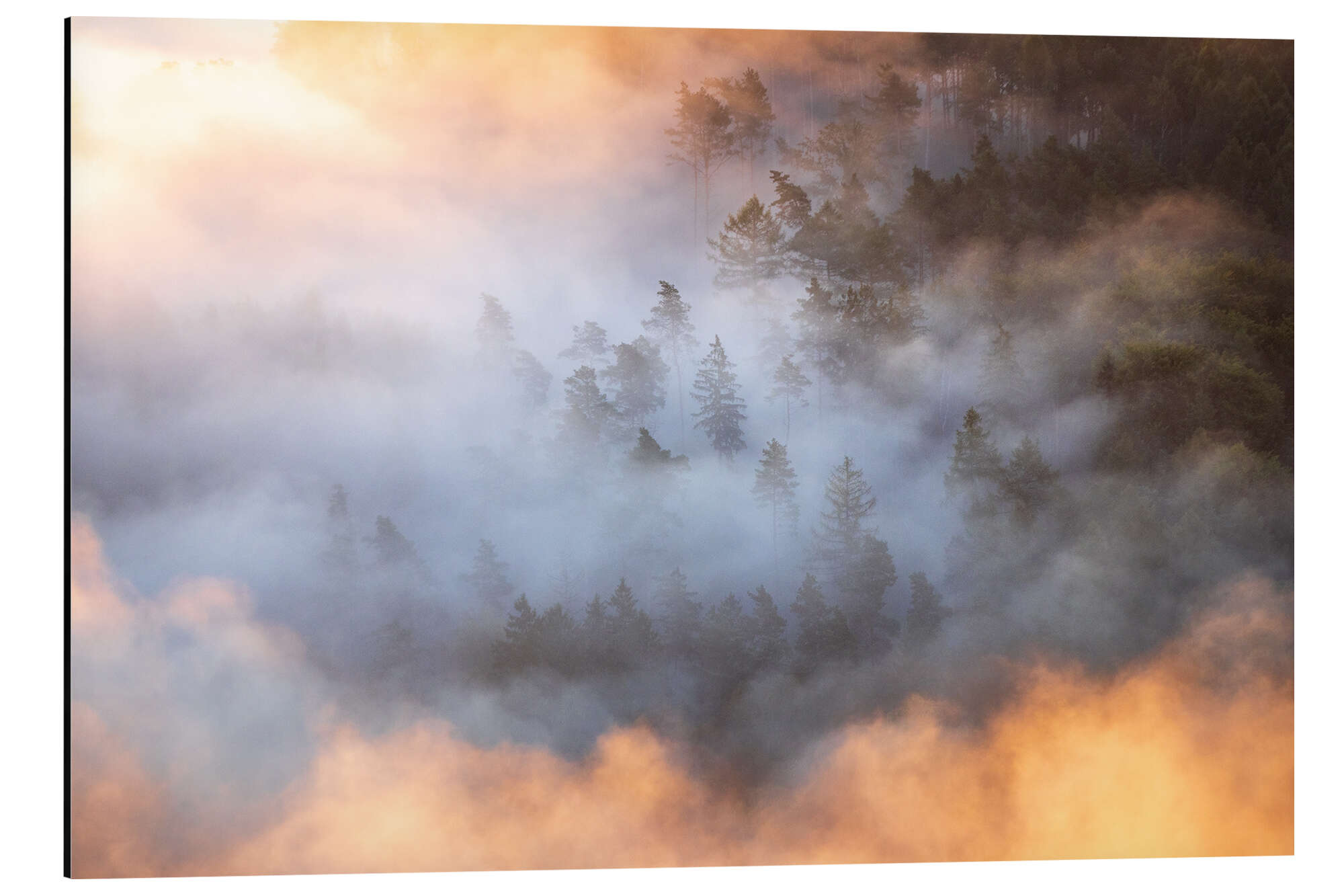 Alubild Wald im Morgennebel