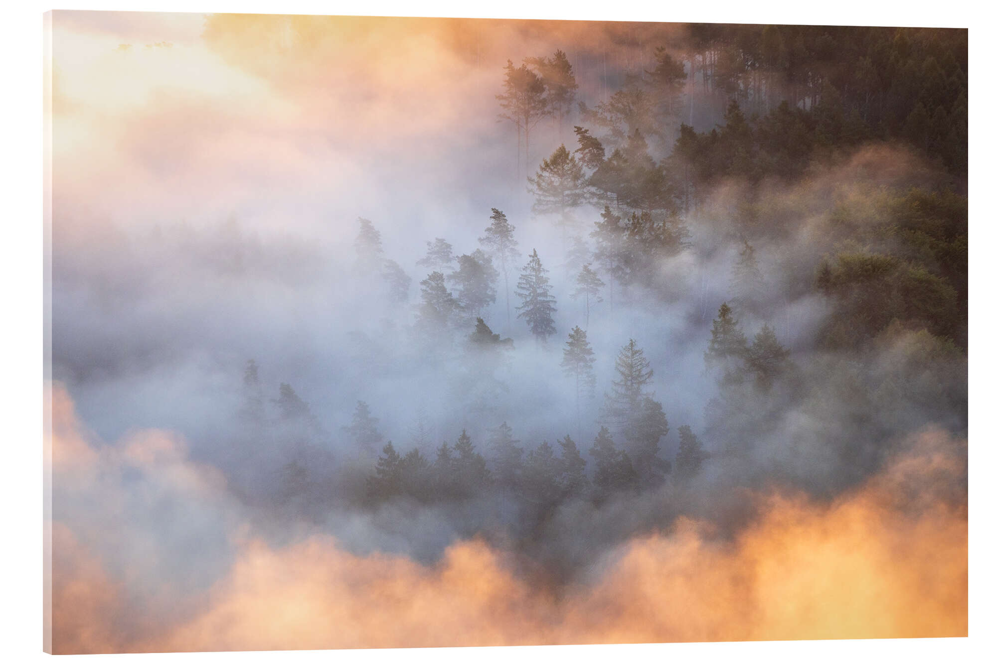 Acrylglasbild Wald im Morgennebel