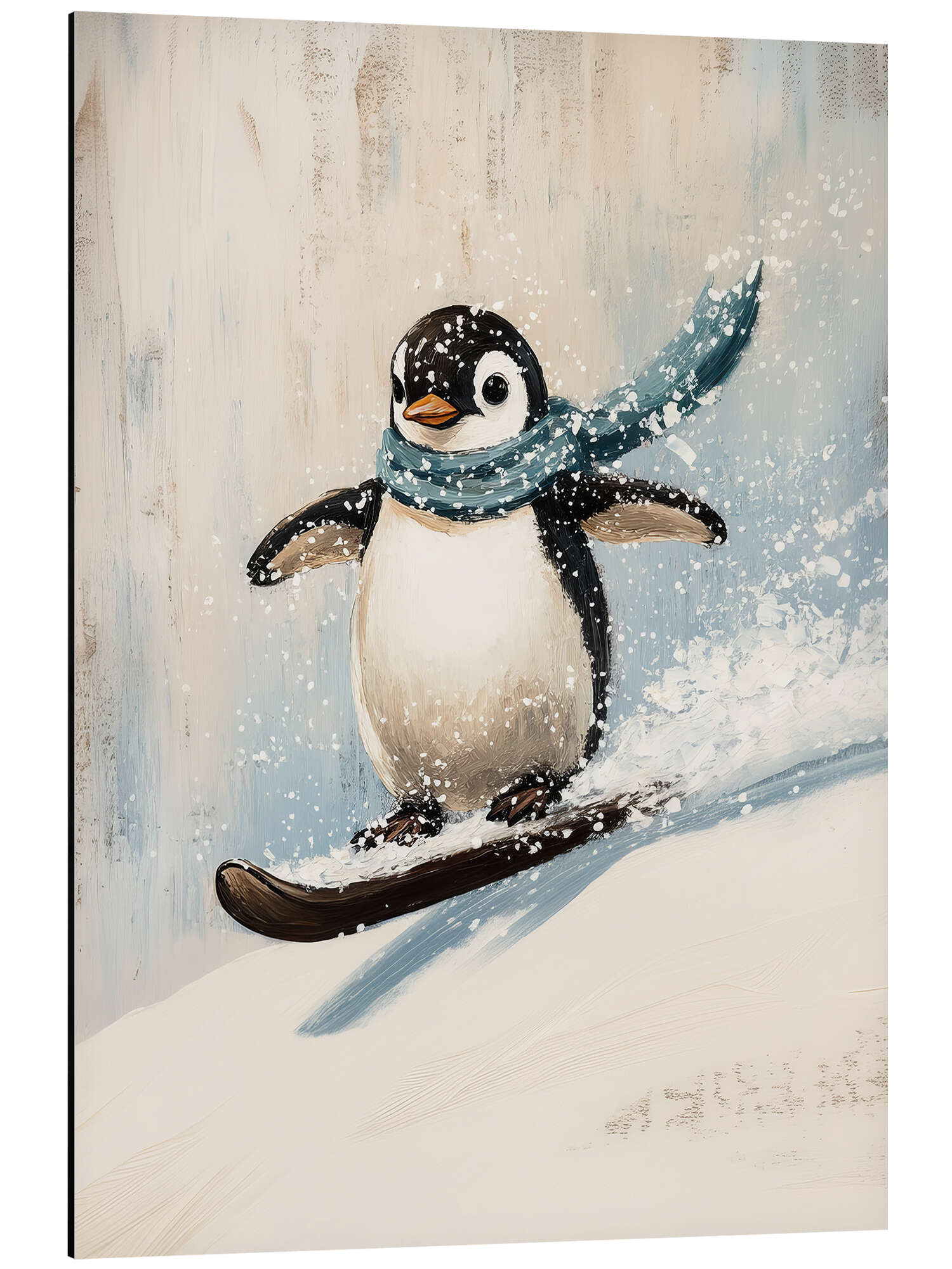 Alubild Niedlicher Pinguin mit Snowboard