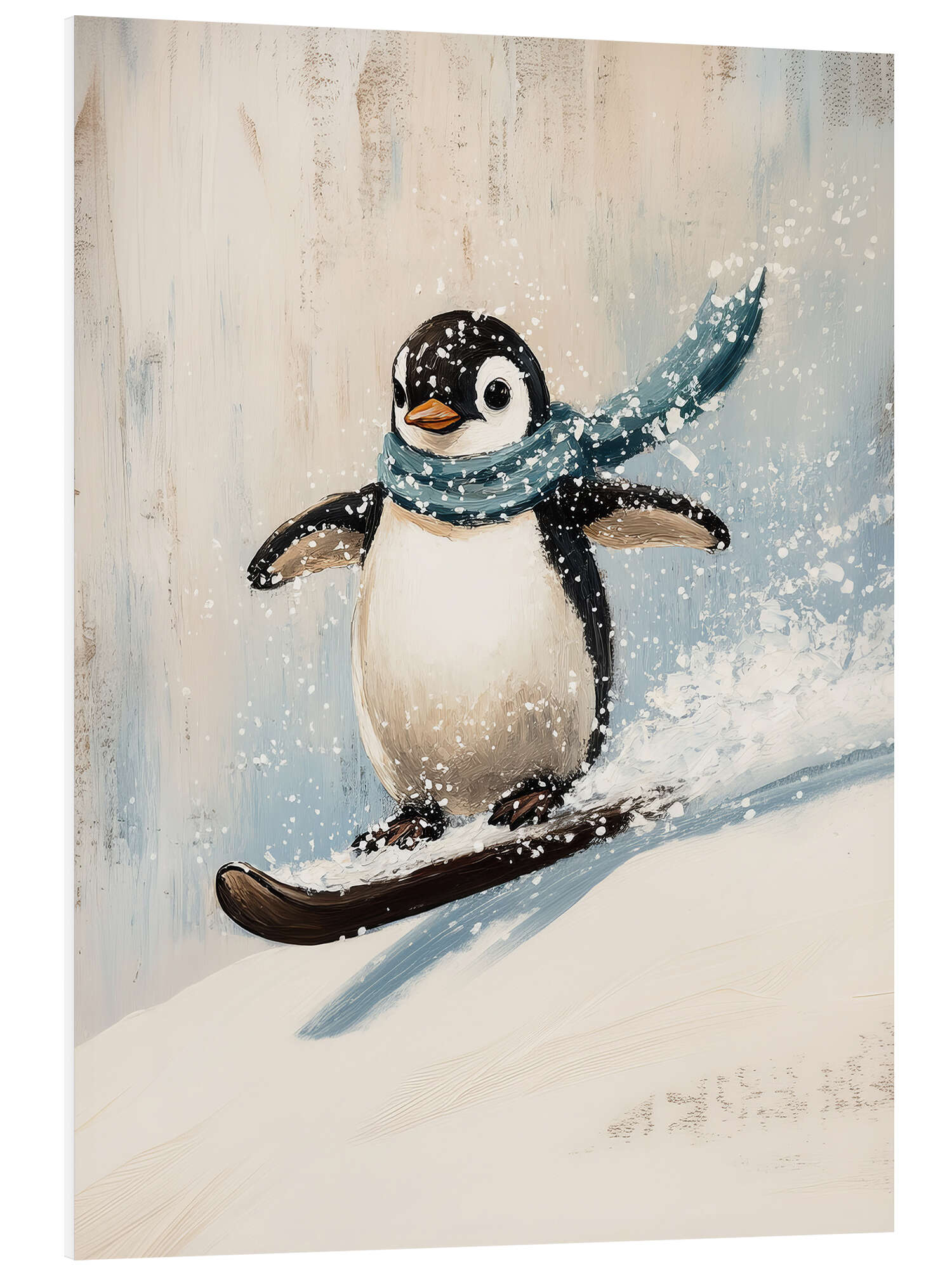 Hartschaumbild Niedlicher Pinguin mit Snowboard