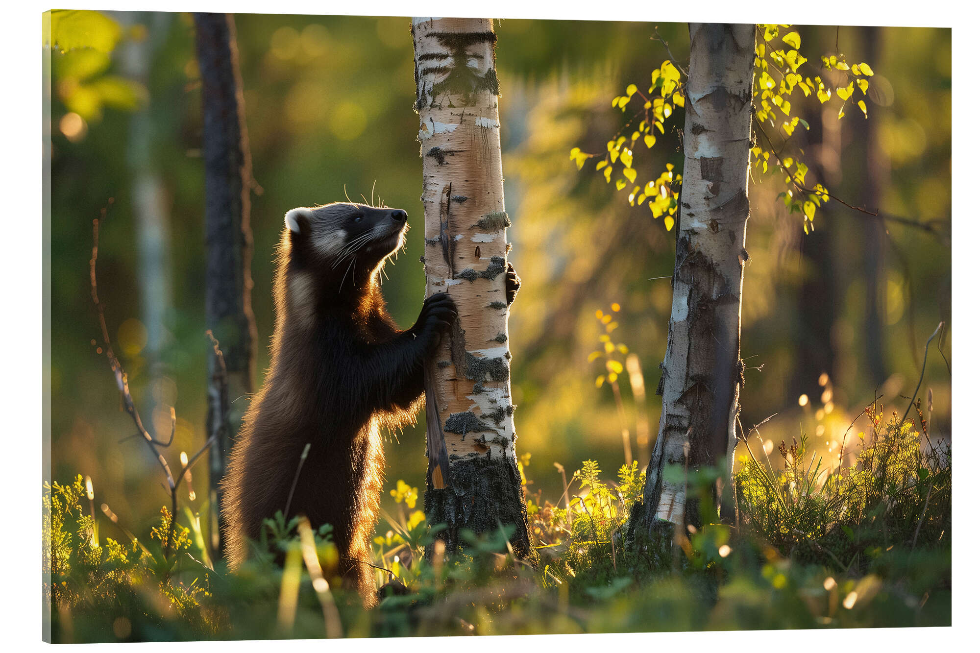 Posterlounge   Wandbilder   Fotografie   Christian Müringer   Acrylglasbild Vielfraß im Birkenwald im Frühling, Finnland
