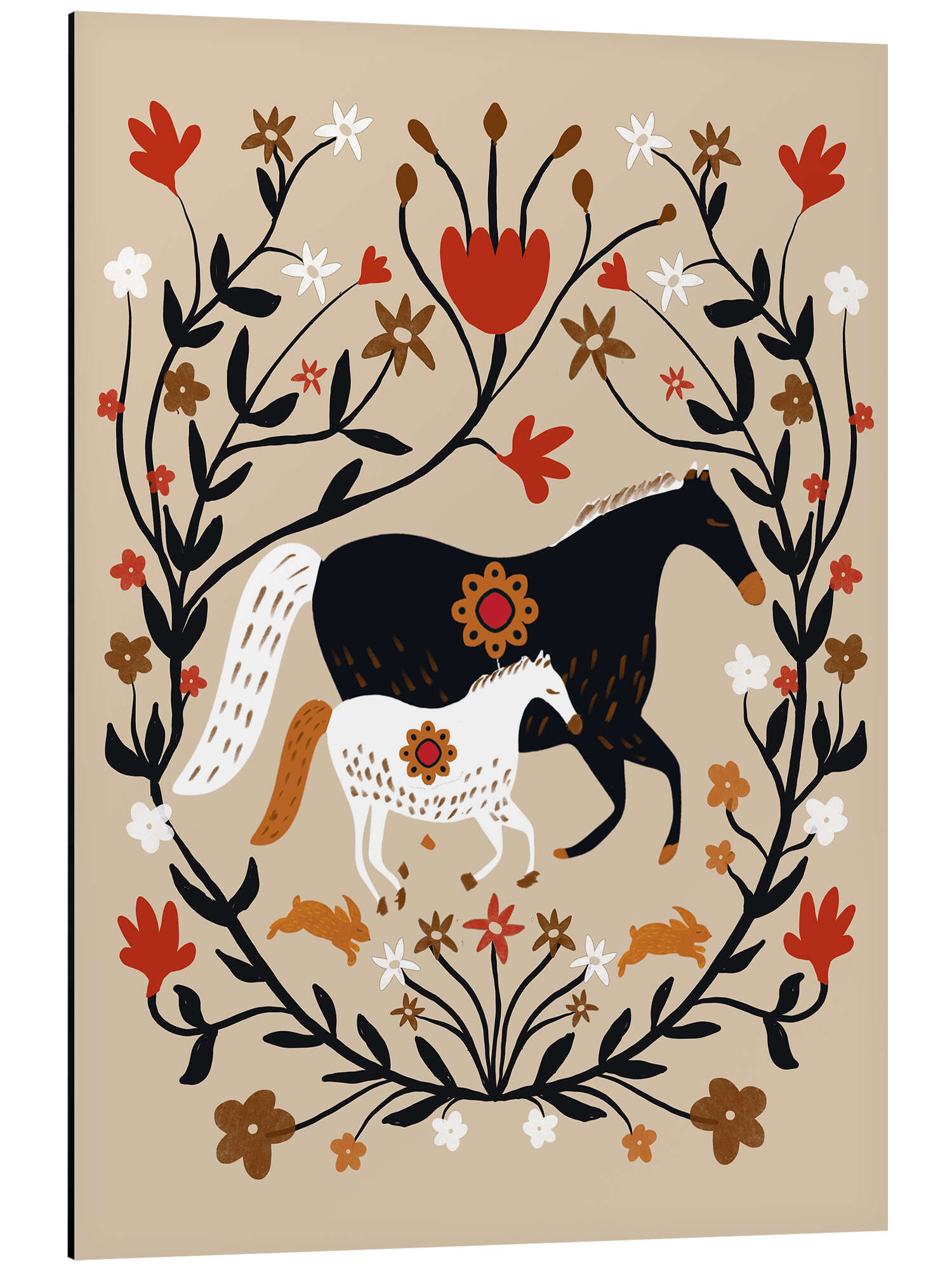 Posterlounge   Wandbilder   Kinderzimmer   Patruschka   Alubild Pferde im floralen Folk Art Kranz