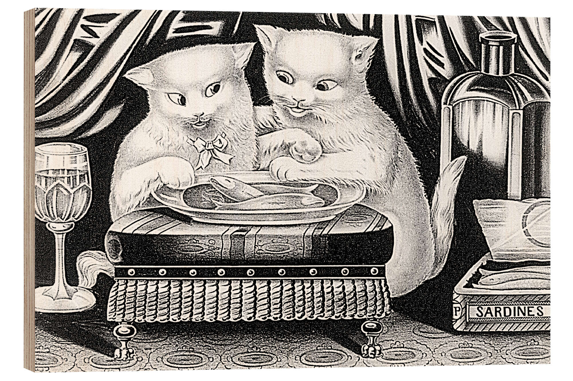 Posterlounge   Wandbilder   Schwarz-Weiß   Holzbild Lustige Kätzchen bei einem Fest